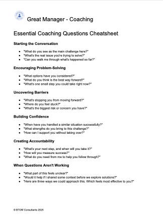 ToolsEssential Coaching QuestionsTools - CoachingBrian WatkinsFeb 17, 2026∙ PaidShareHere are some great questions to use when you are coaching employees.Essential Coaching Questions118KB ∙ PDF fileDownloadDownload Continue reading this post for free, courtesy of Brian Watkins.Claim my free postOr purchase a paid subscription.PreviousNext